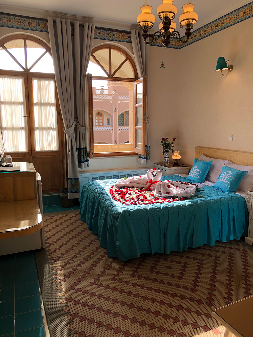 Dad Hotel’s magnificent and charming architecture make you sit down for hours in the central yard with a cup of tea and make memories which you will smile every time by recollecting it. The roof garden of this hotel, with no hesitation is the most beautiful part of the building. You can watch this city’s history and culture line by line. People of Yazd are famous for their hospitality, in this complex we will show you this character in the best way.